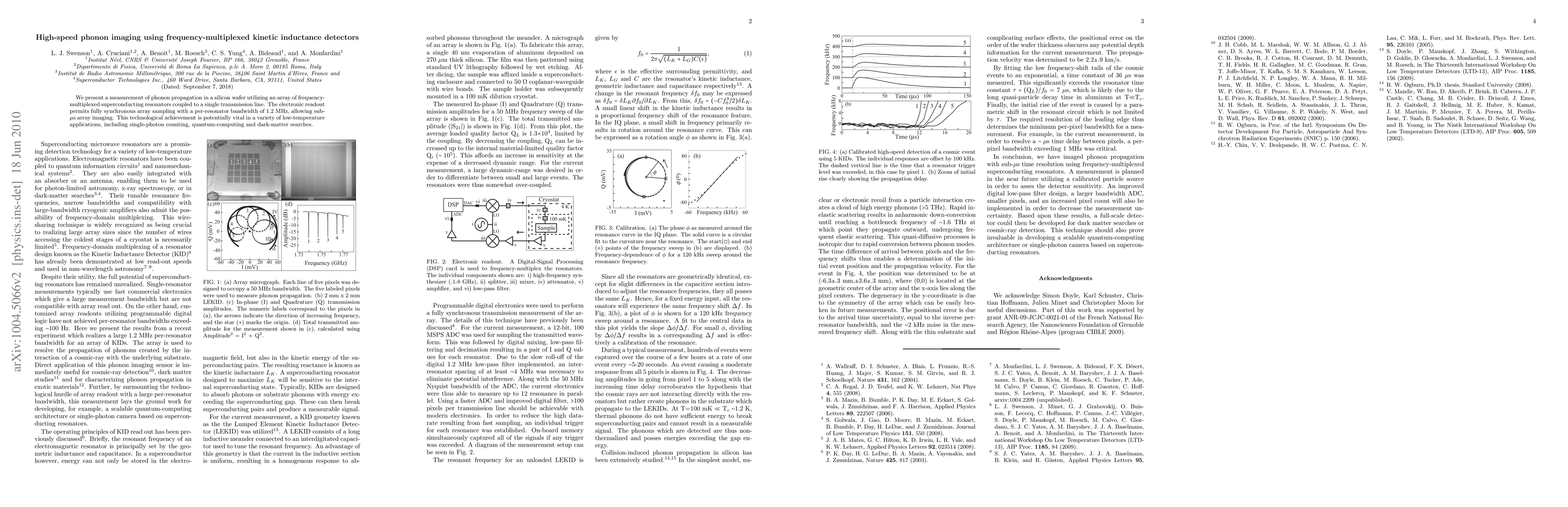 We present a measurement of phonon propagation in a silicon wafer utilizing an array of frequency-multiplexed superconducting resonators coupled to a single transmission line. The electronic readout permits fully synchronous array sampling with a per-resonator bandwidth of 1.2 MHz, allowing sub-$\mu$s array imaging. This technological achievement is potentially vital in a variety of low-temperature applications, including single-photon counting, quantum-computing and dark-matter searches.