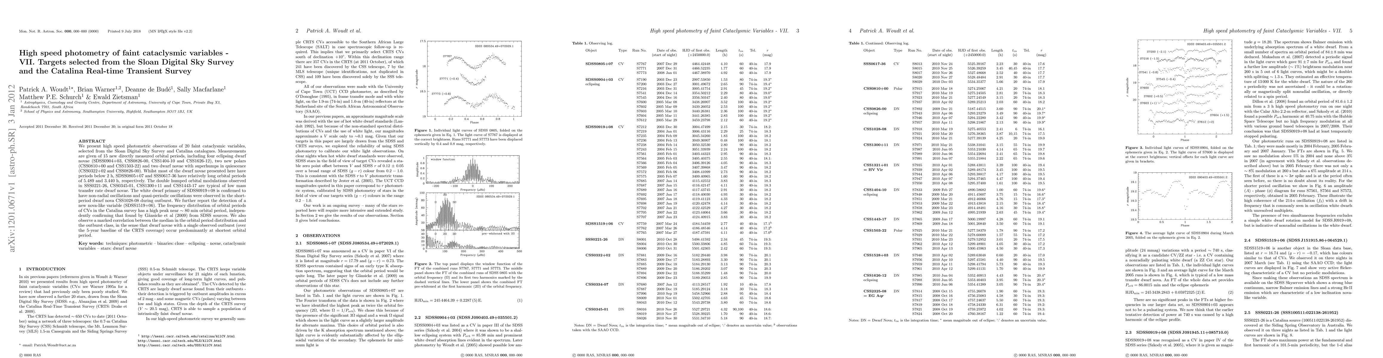This paper reports high-speed photometric observations of 20 faint cataclysmic variables, revealing 15 new orbital periods, including four eclipsing dwarf novae and two new polars. The study confirms non-radial oscillations in the white dwarf primary of SDSS0919+08 and finds a correlation between orbital period and outburst class.