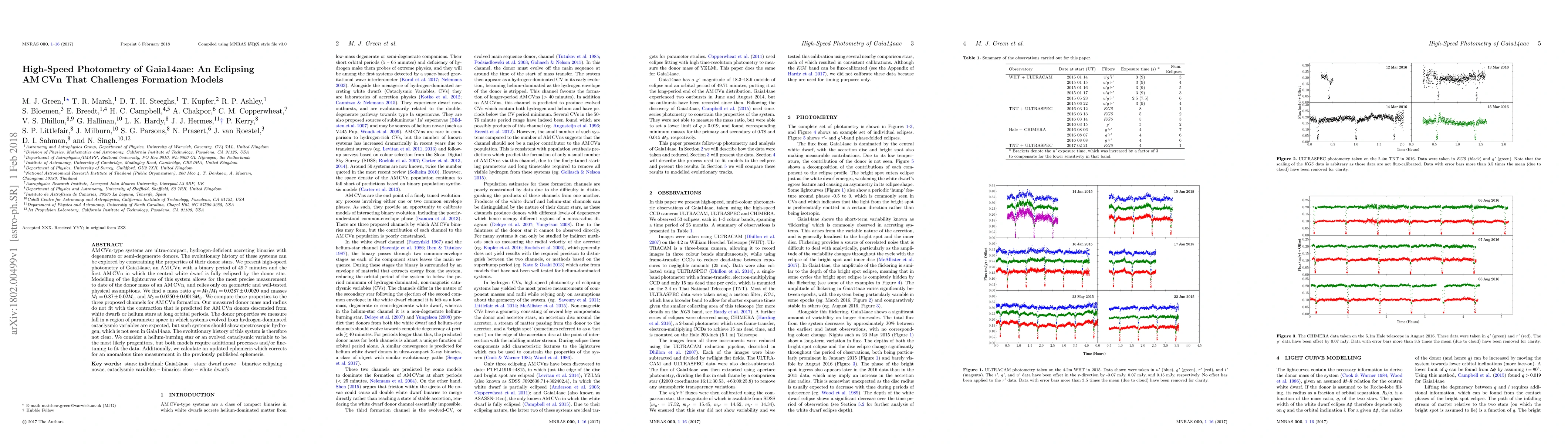 High-speed photometry of Gaia14aae, an AM CVn eclipsing binary, reveals a donor mass of 0.0250 ± 0.0013 M☉, challenging existing formation models for such systems. The donor's properties do not fit typical evolutionary paths, suggesting alternative progenitors like helium-burning stars or evolved cataclysmic variables.