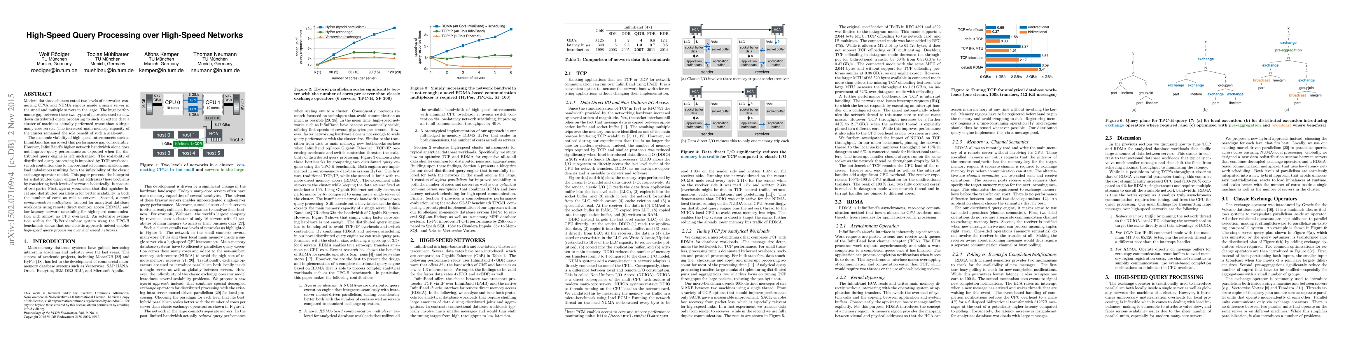 This paper proposes a distributed query engine that enhances high-speed query processing over high-speed networks by addressing scalability issues through hybrid parallelism and a novel communication multiplexer using RDMA and low-latency scheduling, significantly improving performance over traditional methods. Evaluations in the HyPer database system demonstrate the effectiveness of this holistic approach.