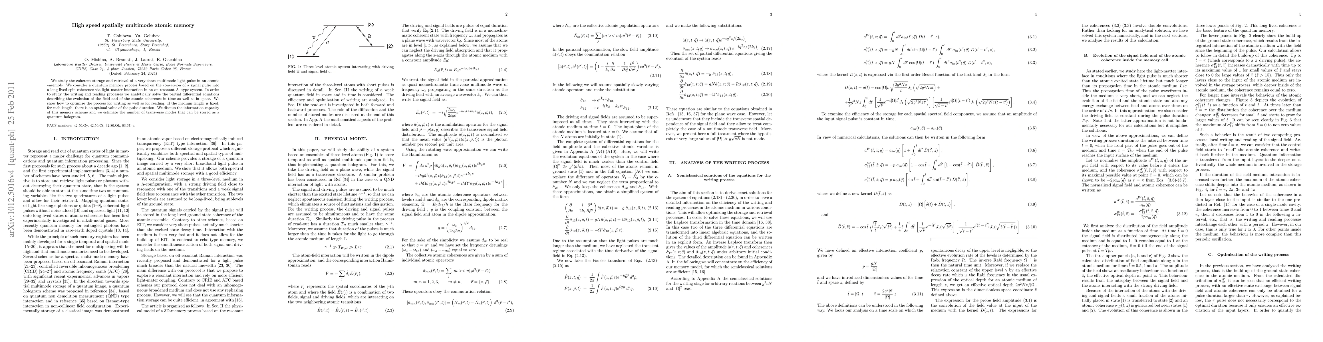Researchers developed a method to store and retrieve information in an atomic memory using short multimode light pulses, optimizing pulse duration for better performance.