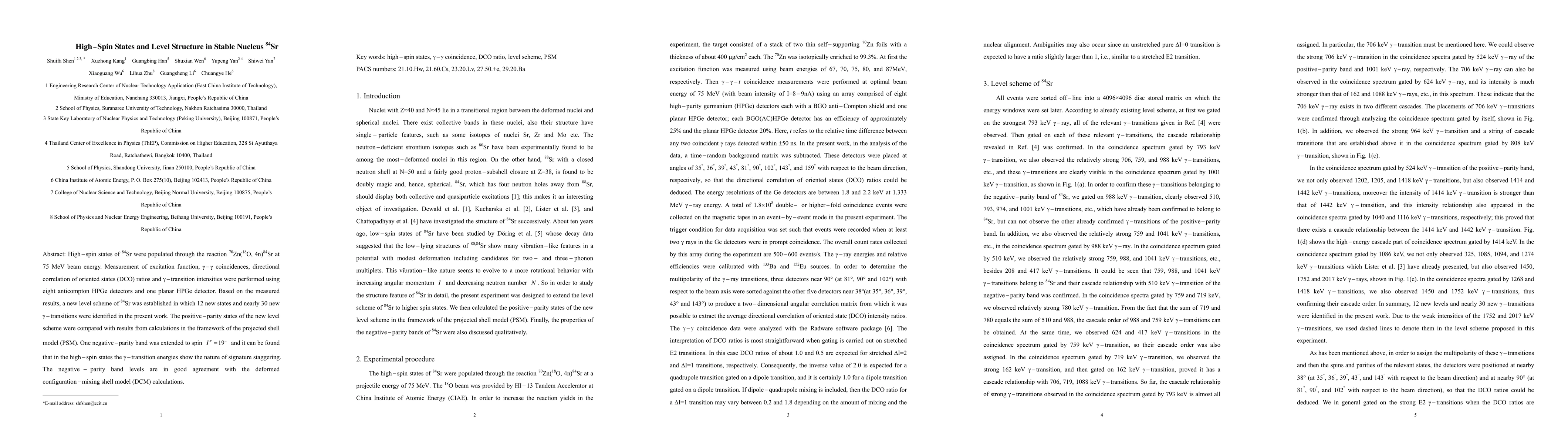 Researchers populated 84Sr with high-spin states using particle reaction and measured gamma transitions to identify 12 new states and nearly 30 new transitions, providing insights into its level structure and competing models like PSM and DCM.