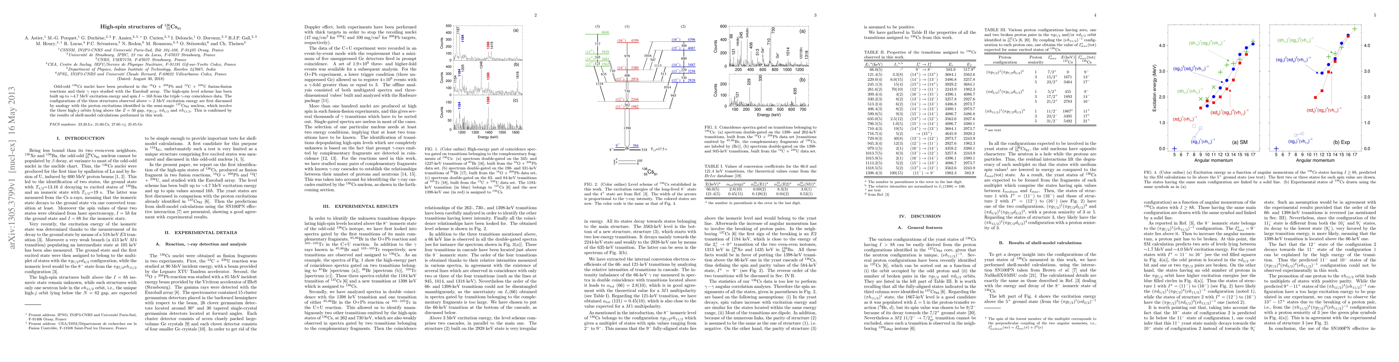 Odd-odd 136Cs nuclei have been produced in the 18O + 208Pb and 12C + 238U fusion-fission reactions and their gamma rays studied with the Euroball array. The high-spin level scheme has been built up to ~ 4.7 MeV excitation energy and spin I ~ 16 hbar from the triple gamma-ray coincidence data. The configurations of the three structures observed above ~ 2 MeV excitation energy are first discussed by analogy with the proton excitations identified in the semi-magic 137Cs nucleus, which involve the three high-j orbits lying above the Z=50 gap, pi g_{7/2}, pi d_{5/2} and pi h_{11/2}. This is confirmed by the results of shell-model calculations performed in this work.