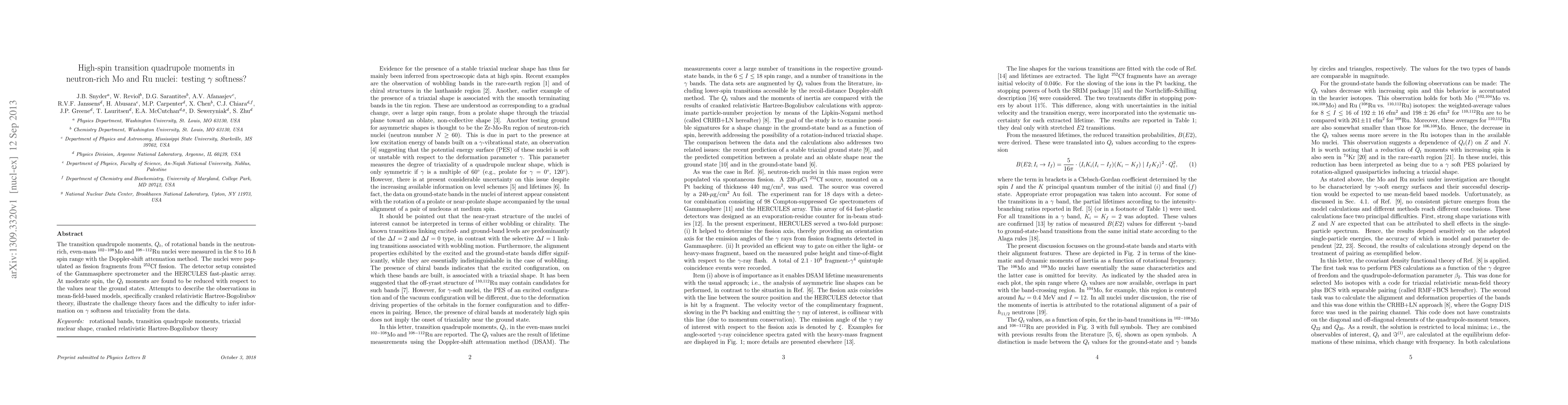 This paper measures transition quadrupole moments in neutron-rich Mo and Ru nuclei, finding reduced values at moderate spin. The study highlights challenges in using mean-field models to infer $\gamma$ softness and triaxiality from the data.