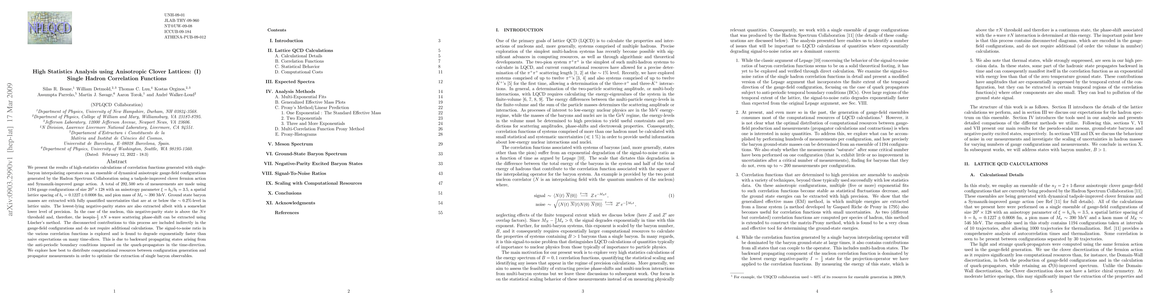Researchers used high-statistics calculations to analyze correlation functions in anisotropic clover lattices, extracting baryon masses with precision levels below 0.2%. The analysis included the extraction of a negative-parity state for the nucleon and explored signal-to-noise ratios.