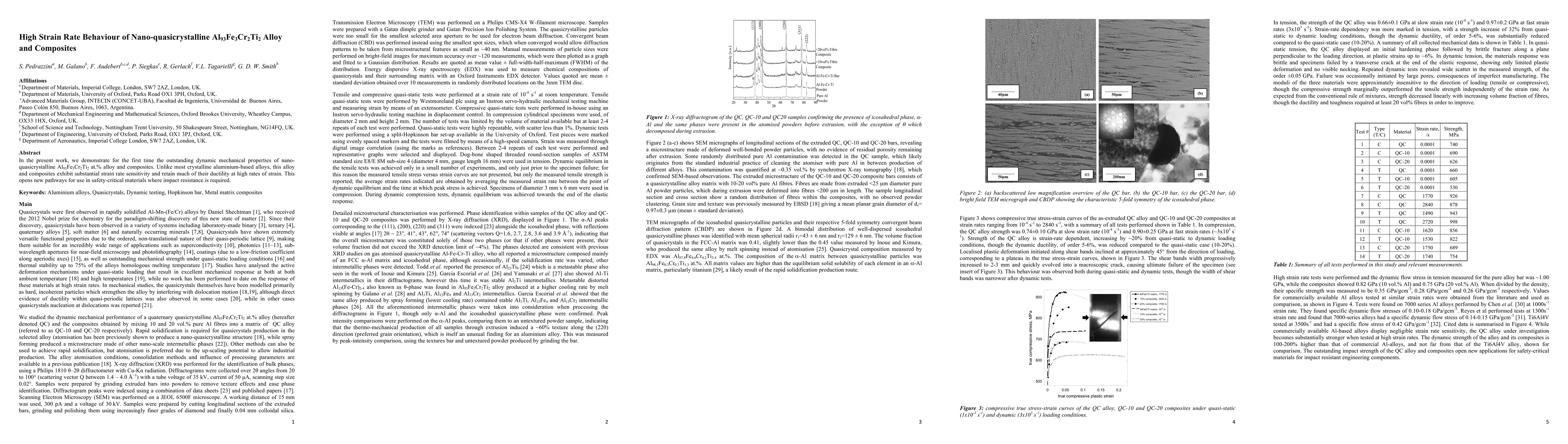 This study reveals the exceptional dynamic mechanical properties of nano-quasicrystalline Al93Fe3Cr2Ti2 alloy and composites, showcasing significant strain rate sensitivity and high ductility at elevated strain rates. These findings suggest potential applications in safety-critical materials requiring enhanced impact resistance.