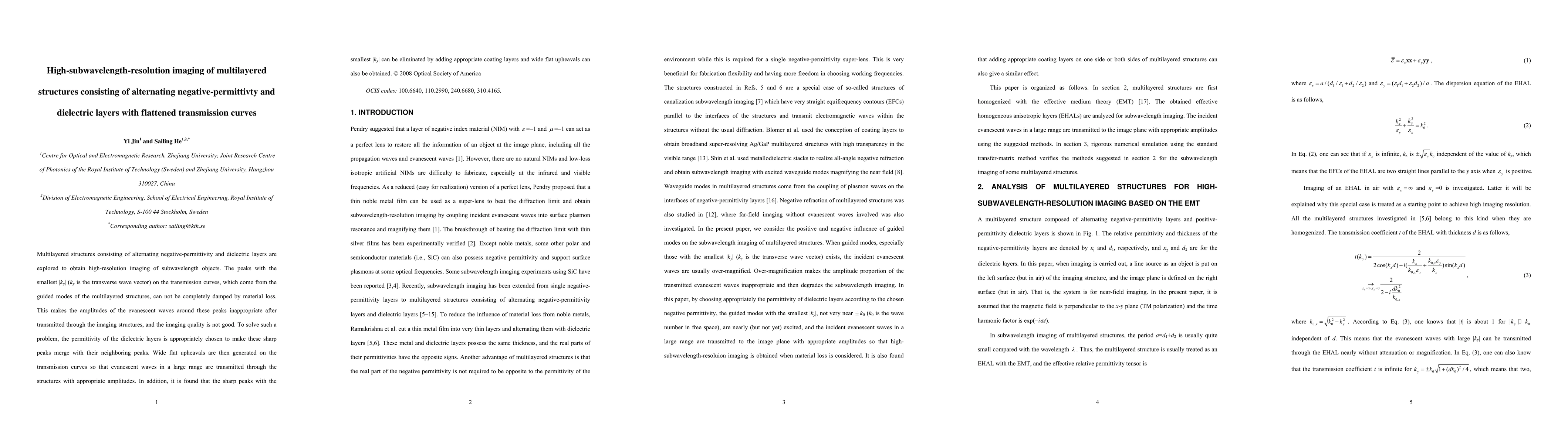 This paper investigates multilayered structures with alternating negative-permittivity and dielectric layers to achieve high-resolution subwavelength imaging. By merging sharp peaks in transmission curves and generating wide flat upheavals, the study enhances the transmission of evanescent waves, improving imaging quality.