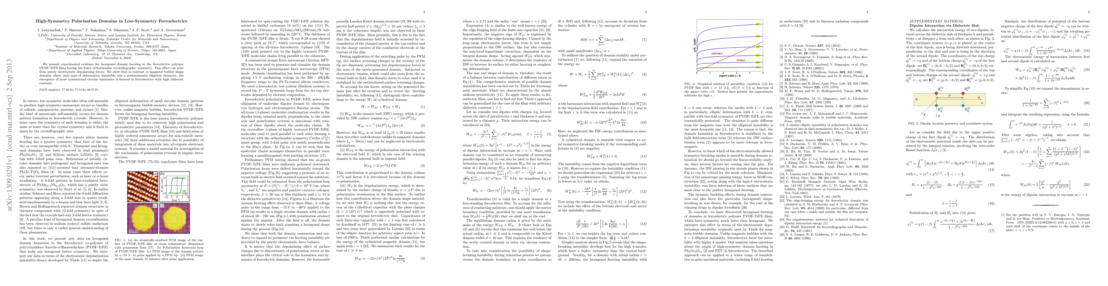 Researchers discovered hexagonal domain faceting in ferroelectric polymer PVDF-TrFE films with lower symmetry, driven by electrostatic forces. This effect leads to more symmetrical circular harmonics compared to magnetic domains.