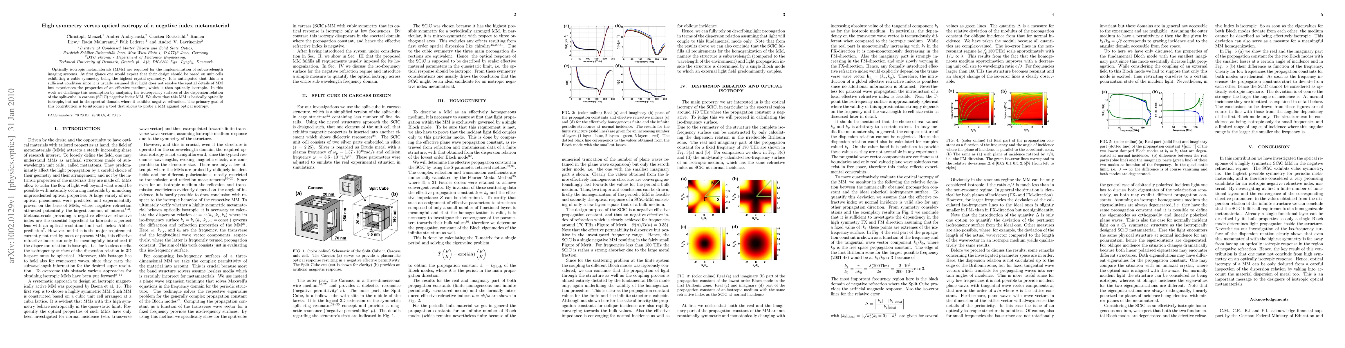 Optically isotropic metamaterials (MMs) are required for the implementation of subwavelength imaging systems. At first glance one would expect that their design should be based on unit cells exhibiting a cubic symmetry being the highest crystal symmetry. It is anticipated that this is a sufficient condition since it is usually assumed that light does not resolve the spatial details of MM but experiences the properties of an effective medium, which is then optically isotropic. In this work we challenge this assumption by analyzing the isofrequency surfaces of the dispersion relation of the split-cube in carcass (SCiC) negative index MM. We show that this MM is basically optically isotropic, but not in the spectral domain where it exhibits negative refraction. The primary goal of this contribution is to introduce a tool that allows to probe a MM against optical isotropy.