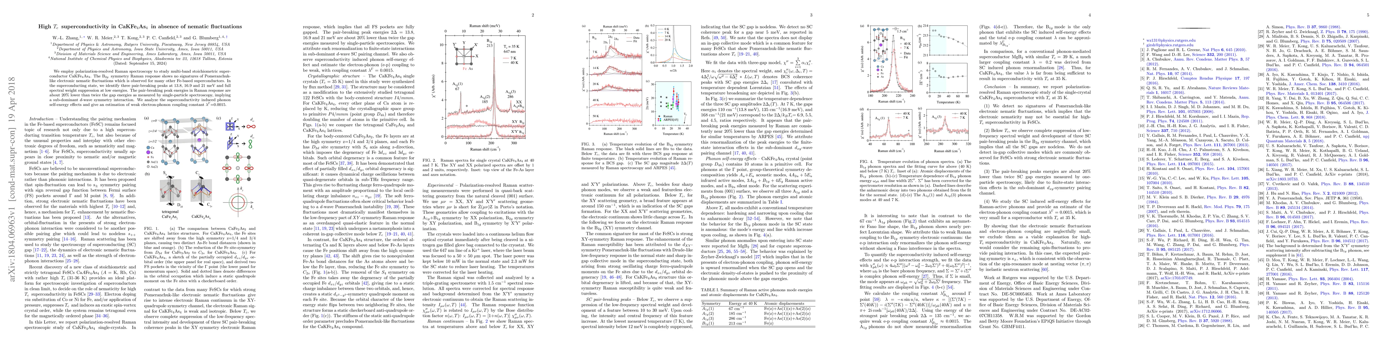 This study uses Raman spectroscopy to investigate the superconducting CaKFe$_4$As$_4$ compound, finding no evidence of nematic fluctuations unlike many other Fe-based superconductors. The analysis reveals three pair-breaking peaks and suggests a sub-dominant $d$-wave symmetry, with a weak electron-phonon coupling constant of $\lambda^\Gamma$=0.0015.