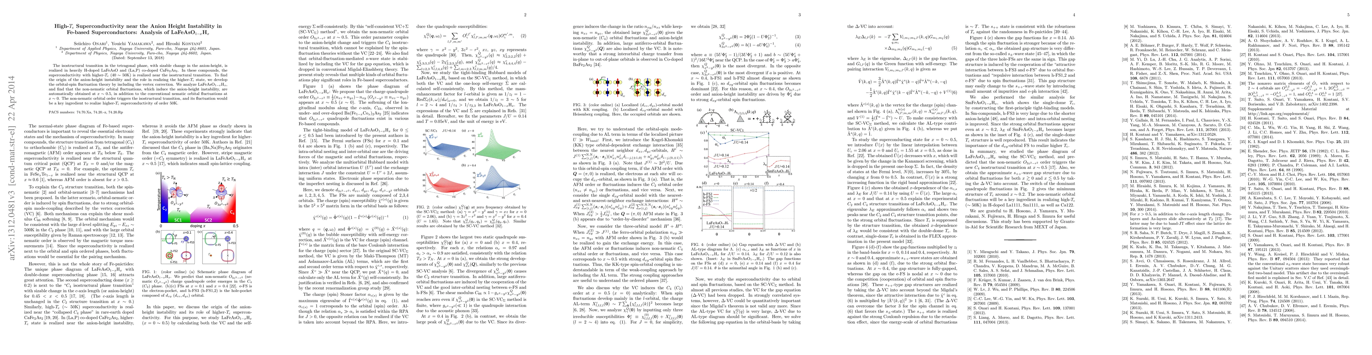 This study investigates the relationship between anion height instability and high-temperature superconductivity in Fe-based superconductors, particularly LaFeAsO$_{1-x}$H$_x$. The research finds that higher-Tc superconductivity (up to 50 K) occurs near the isostructural transition caused by non-nematic orbital fluctuations, suggesting these fluctuations play a crucial role in achieving such high critical temperatures.