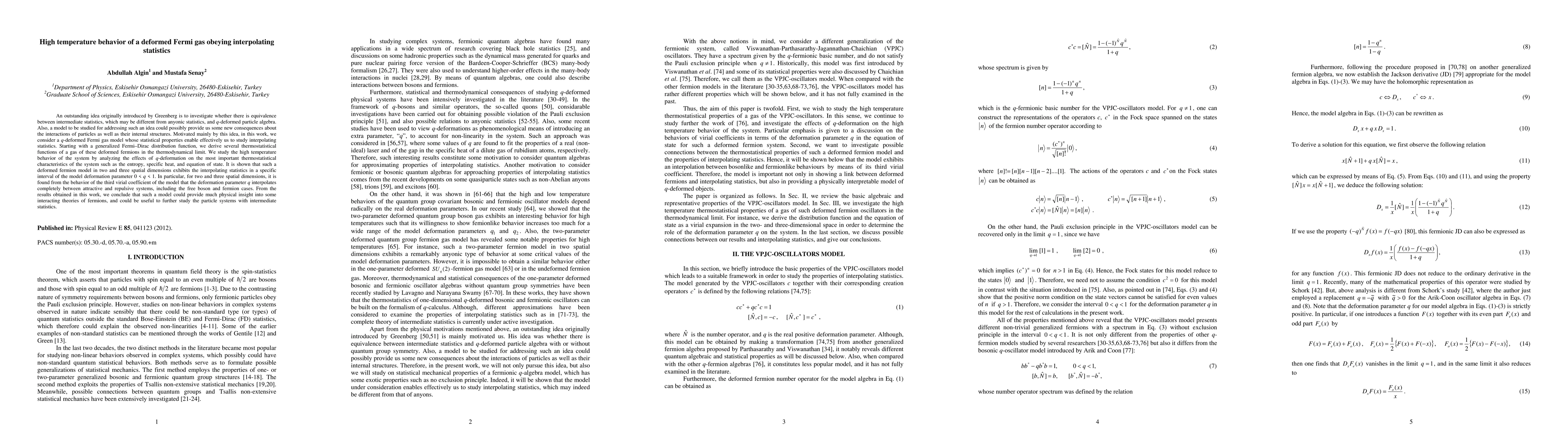 A q-deformed Fermi gas model exhibits interpolating statistics between 0 < q < 1 at high temperatures, bridging the gap between attractive and repulsive systems.
