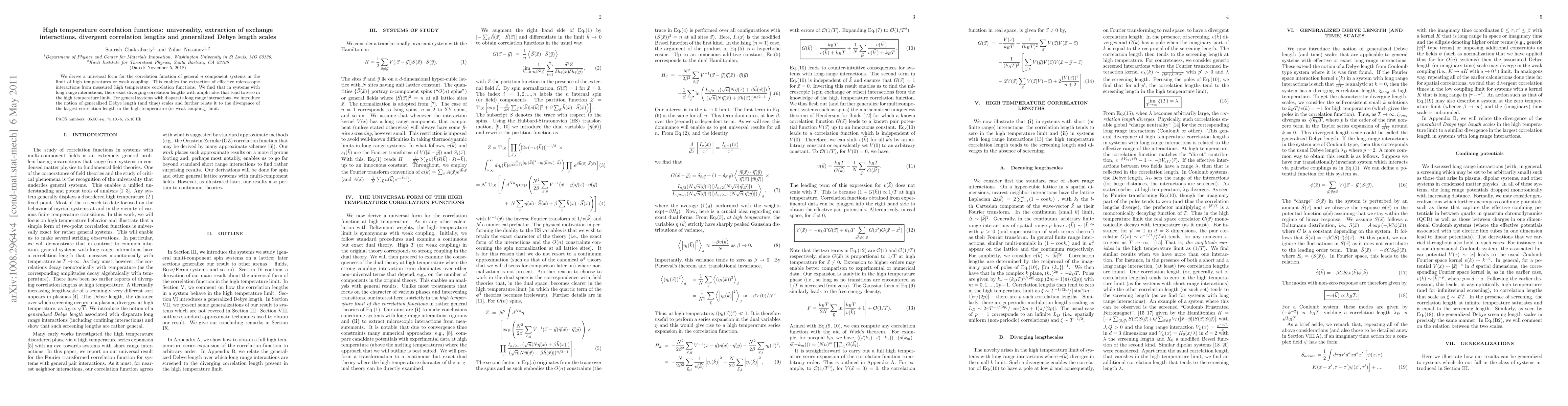 This paper derives a universal form for high-temperature correlation functions in n-component systems, enabling the extraction of effective microscopic interactions. It also identifies diverging correlation lengths and introduces generalized Debye length scales to relate to the largest correlation length's divergence in systems with long-range interactions.