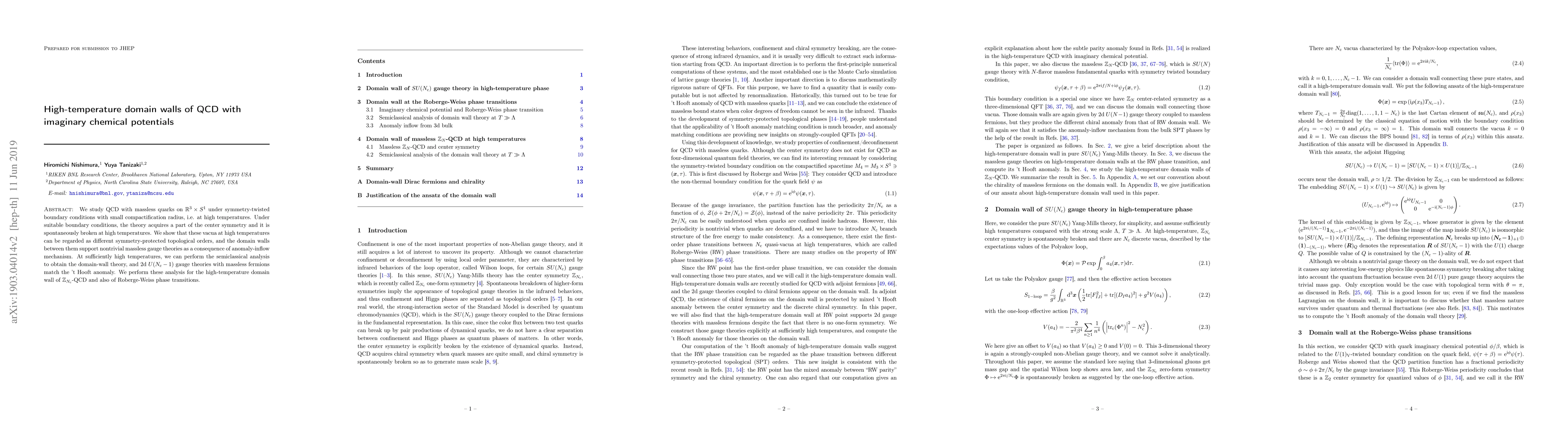 The paper presents a detailed analysis of high-temperature domain walls in QCD, connecting them to symmetry-protected topological orders and anomaly inflow, thereby extending our understanding of non-perturbative QCD.