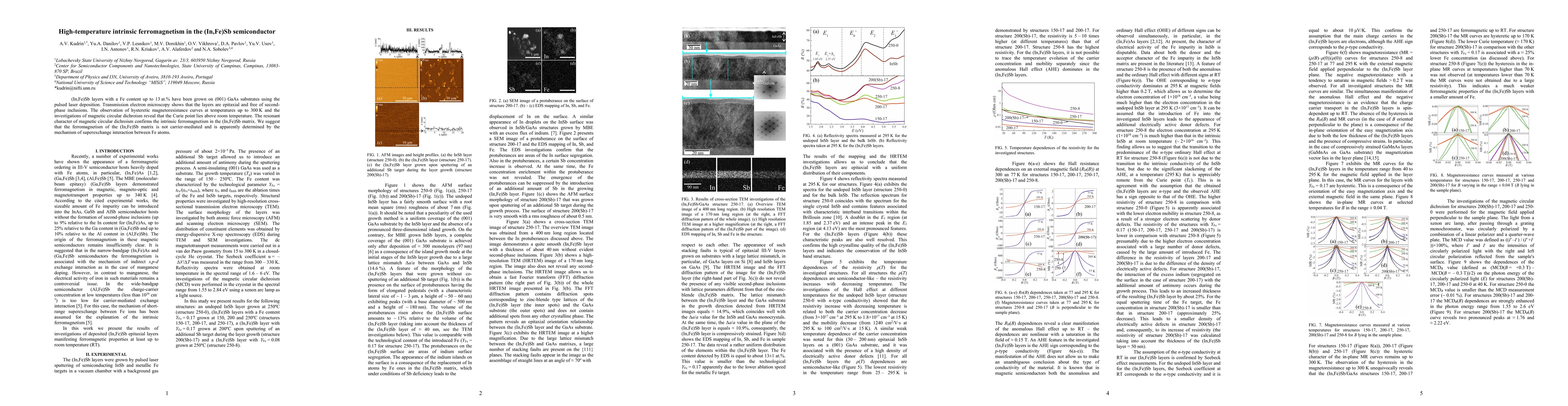 This study reports on the growth of (In,Fe)Sb layers using pulsed laser deposition on GaAs substrates, revealing intrinsic ferromagnetism up to 300 K, suggesting a superexchange interaction mechanism for the observed ferromagnetism. The epitaxial layers are free of secondary phases, as confirmed by TEM investigations.