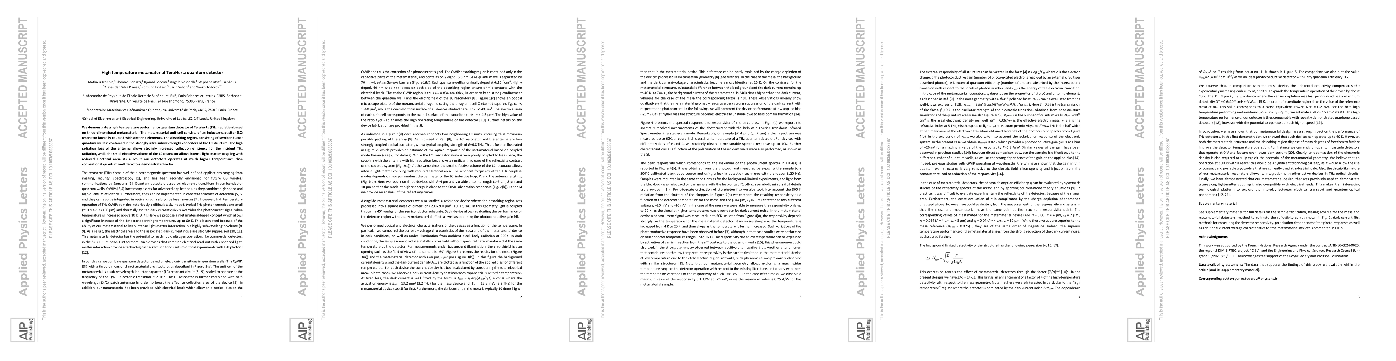 Researchers developed a high-temperature terahertz quantum detector using 3D metamaterials, which operates at much higher temperatures than conventional detectors.