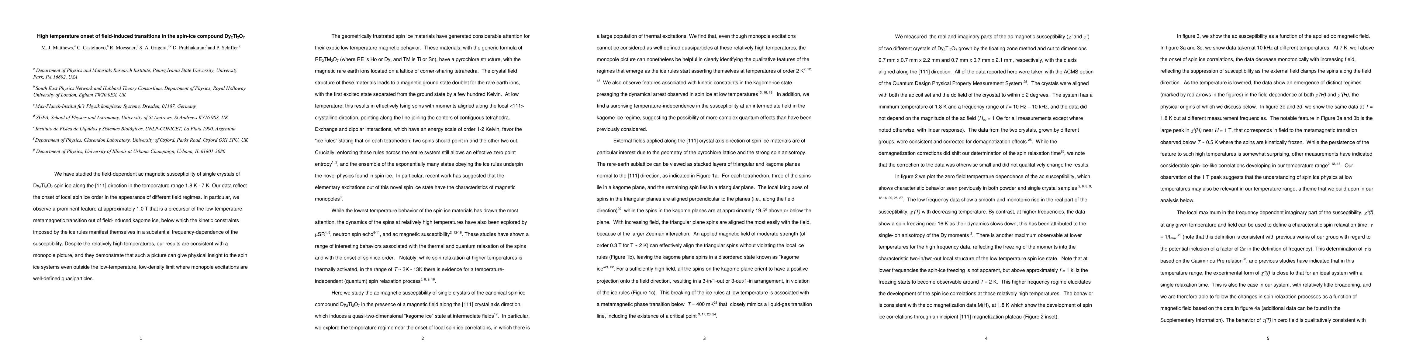 Researchers studied Dy2Ti2O7 spin ice crystals under different magnetic fields between 1.8 K and 7 K, finding a precursor to the low-temperature metamagnetic transition at approximately 1 T. The results support a monopole picture and provide insight into the behavior of spin ice systems at relatively high temperatures.