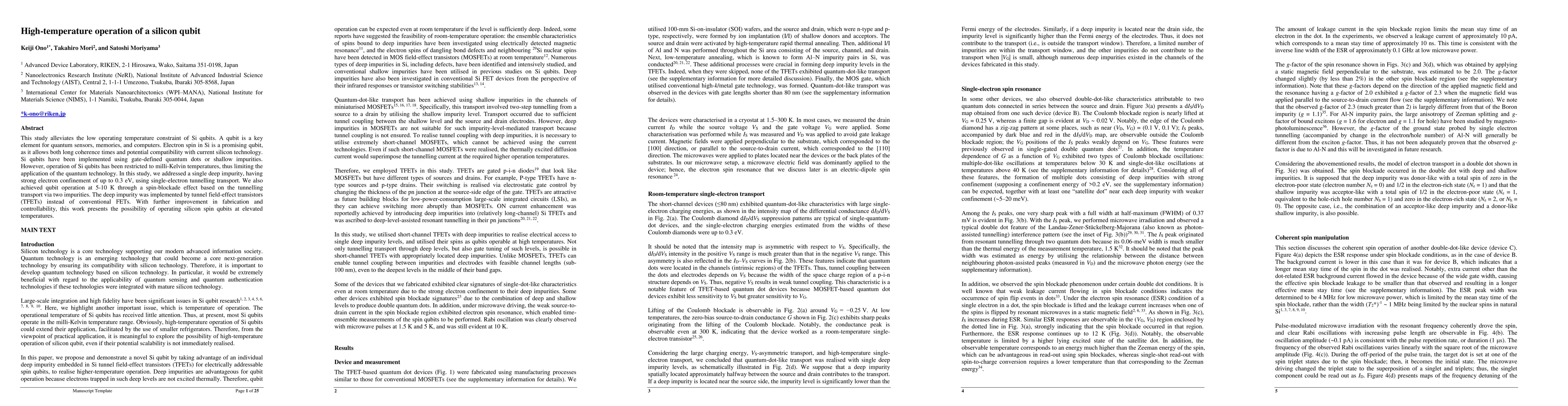 This study demonstrates the feasibility of operating silicon spin qubits at elevated temperatures (5-10 K) using deep impurity qubits and tunnel field-effect transistors, overcoming the traditional milli-Kelvin limitation and enhancing potential for quantum technology applications.