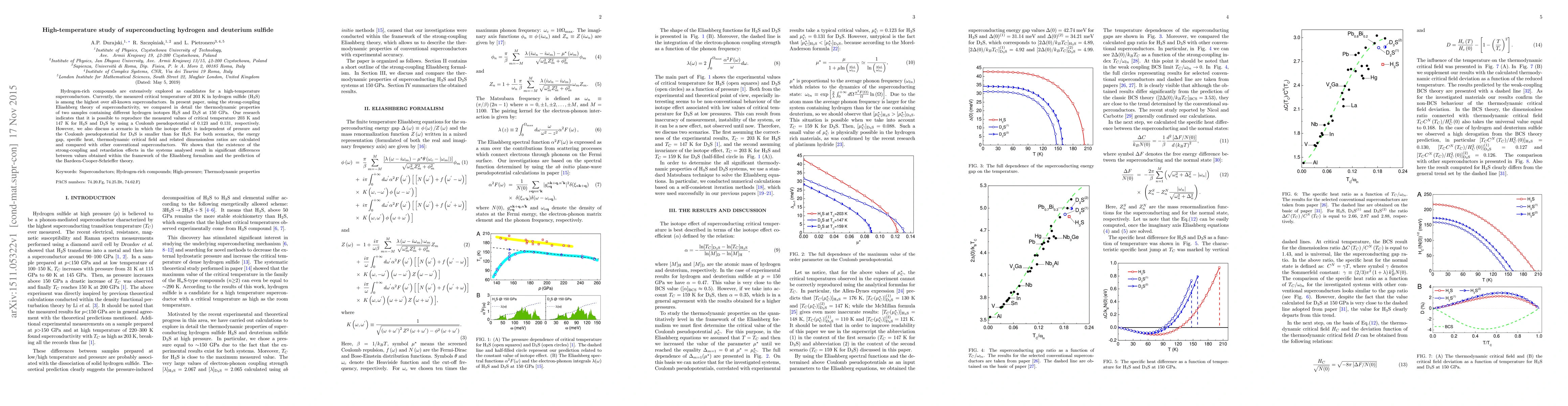 This paper investigates the superconducting properties of hydrogen sulfide (H$_3$S) and deuterium sulfide (D$_3$S) under high pressure using strong-coupling theory, finding that the critical temperatures of 203 K and 147 K can be reproduced with specific Coulomb pseudopotentials. It also explores scenarios where the isotope effect is pressure-independent, highlighting significant differences in thermodynamic properties compared to conventional superconductors.