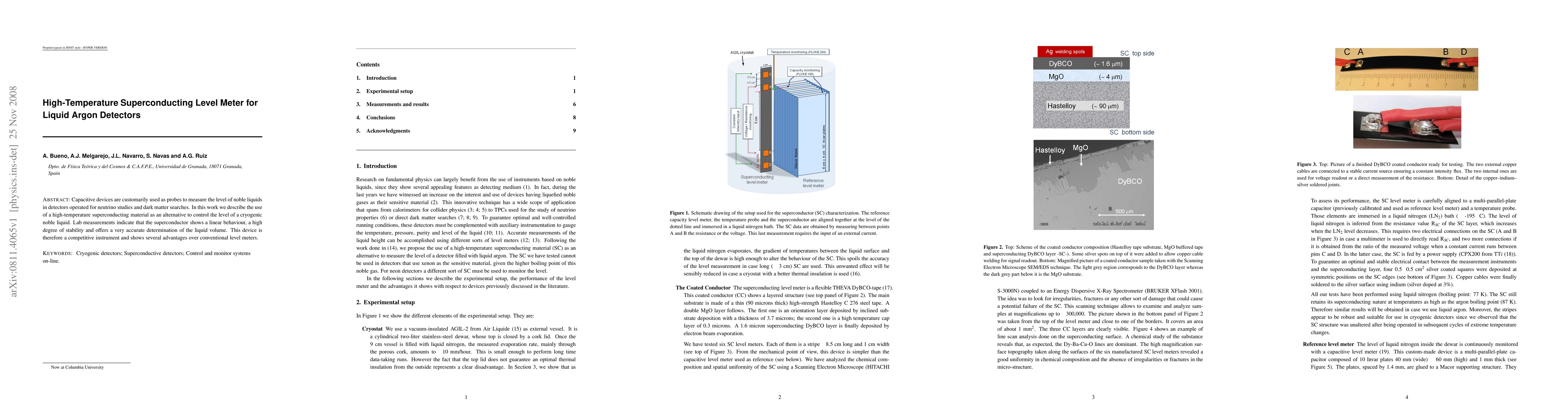 Capacitive devices are customarily used as probes to measure the level of noble liquids in detectors operated for neutrino studies and dark matter searches. In this work we describe the use of a high-temperature superconducting material as an alternative to control the level of a cryogenic noble liquid. Lab measurements indicate that the superconductor shows a linear behaviour, a high degree of stability and offers a very accurate determination of the liquid volume. This device is therefore a competitive instrument and shows several advantages over conventional level meters.