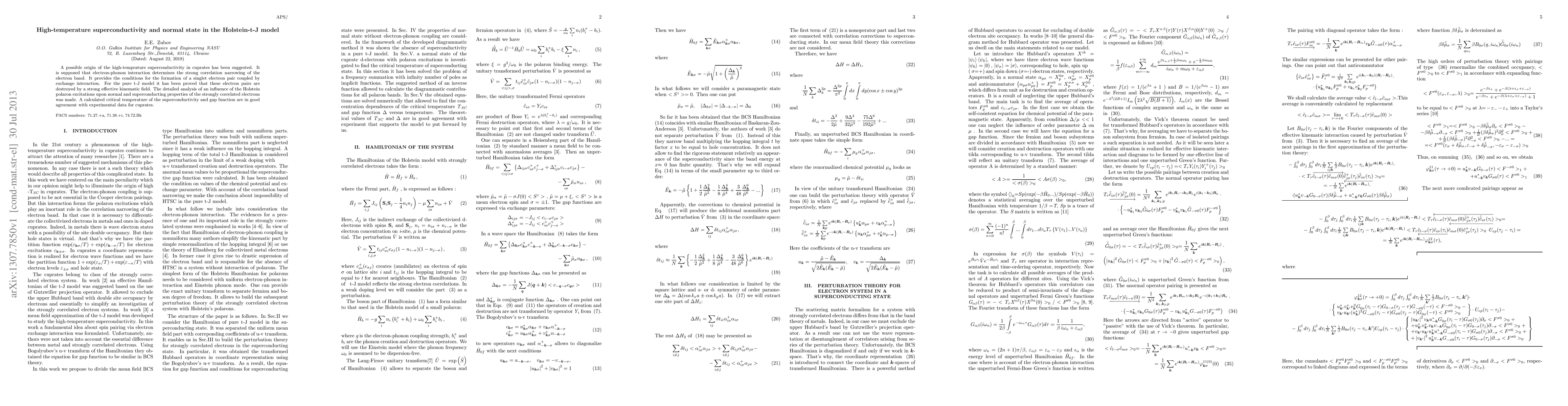 A possible origin of the high-temprature superconductivity in cuprates has been suggested. It is supposed that electron-phonon interaction determines the strong correlation narrowing of the electron band. It provides the conditions for the formation of a singlet electron pair coupled by exchange interaction. For the pure t-J model it has been proved that these electron pairs are destroyed by a strong effective kinematic field. The detailed analysis of an influence of the Holstein polaron excitations upon normal and superconducting properties of the strongly correlated electrons was made. A calculated critical temperature of the superconductivity and gap function are in good agreement with experimental data for cuprates.