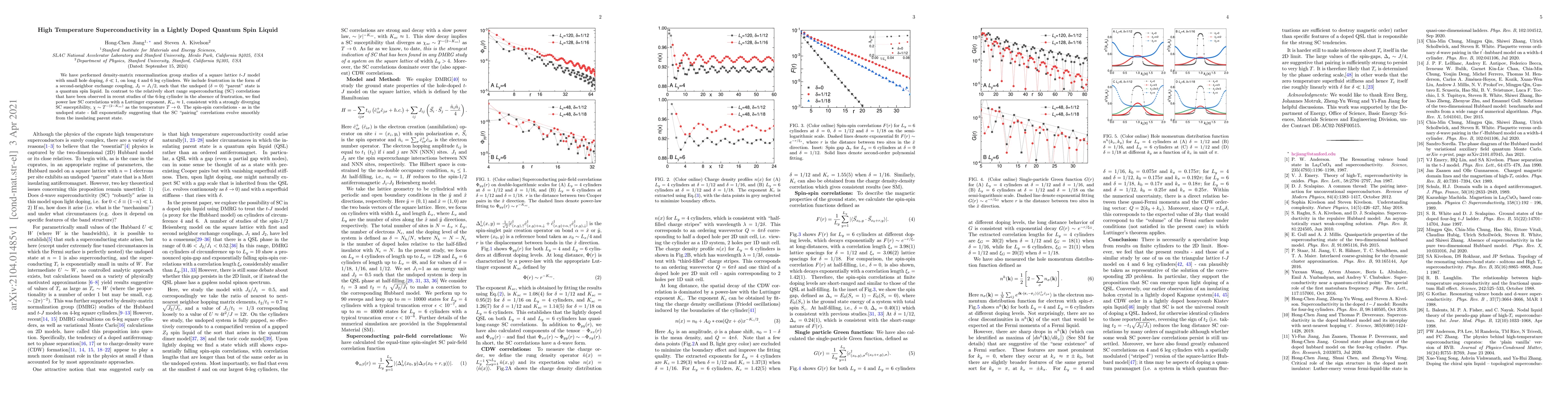 The research distinguishes itself by demonstrating the emergence of high-temperature superconductivity in a lightly doped quantum spin liquid, supported by numerical evidence of power-law SC correlations and Luttinger exponents.