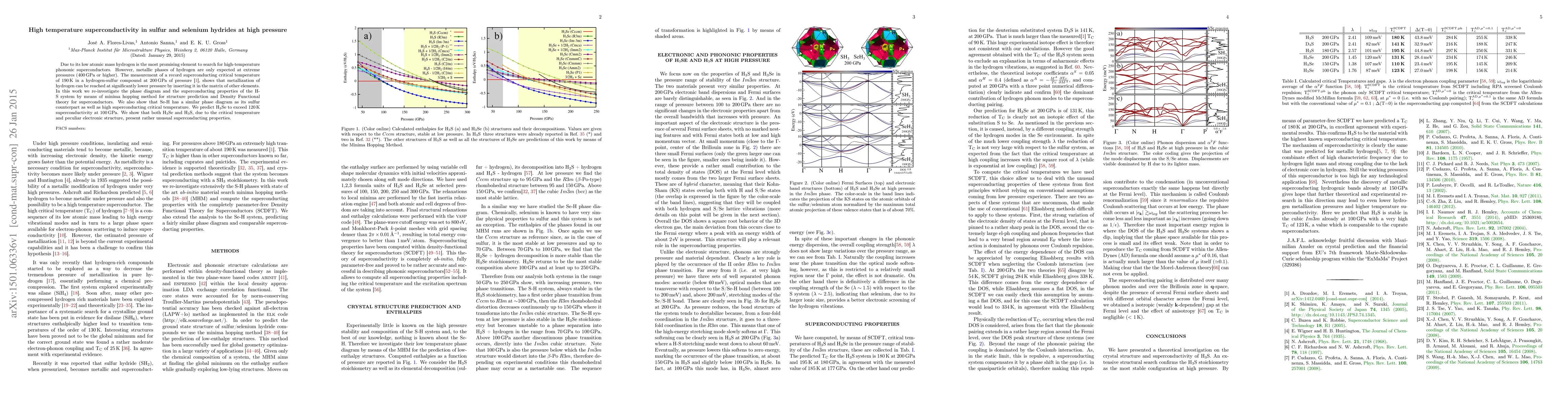 Due to its low atomic mass hydrogen is the most promising element to search for high-temperature phononic superconductors. However, metallic phases of hydrogen are only expected at extreme pressures (400 GPa or higher). The measurement of a record superconducting critical temperature of 190 K in a hydrogen-sulfur compound at 200 GPa of pressure[1], shows that metallization of hydrogen can be reached at significantly lower pressure by inserting it in the matrix of other elements. In this work we re-investigate the phase diagram and the superconducting properties of the H-S system by means of minima hopping method for structure prediction and Density Functional theory for superconductors. We also show that Se-H has a similar phase diagram as its sulfur counterpart as well as high superconducting critical temperature. We predict SeH3 to exceed 120 K superconductivity at 100 GPa. We show that both SeH3 and SH3, due to the critical temperature and peculiar electronic structure, present rather unusual superconducting properties.