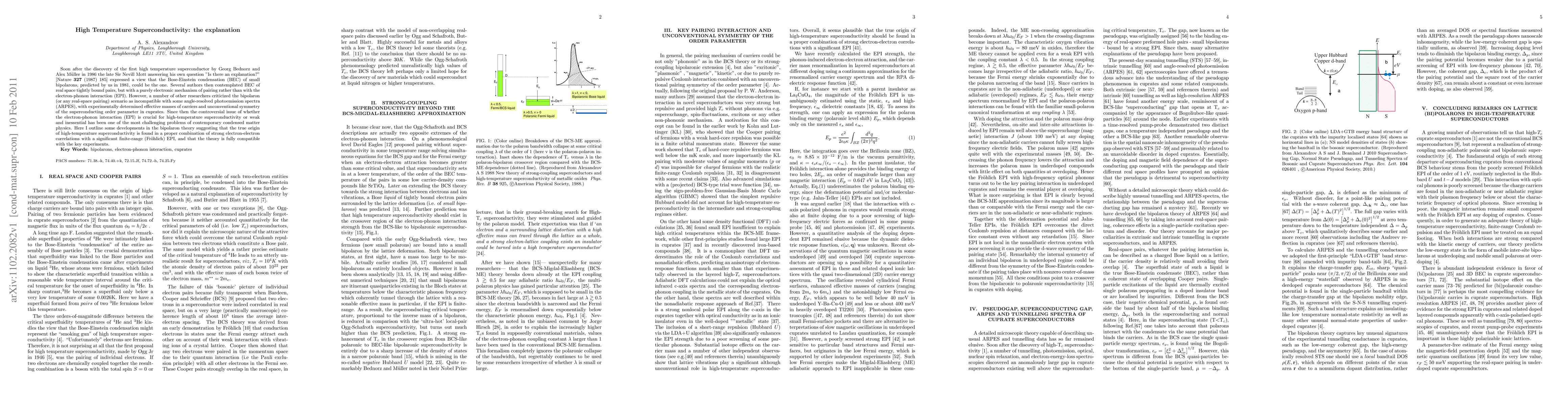 Soon after the discovery of the first high temperature superconductor by Georg Bednorz and Alex Mueller in 1986 the late Sir Nevill Mott answering his own question "Is there an explanation?" [Nature v 327 (1987) 185] expressed a view that the Bose-Einstein condensation (BEC) of small bipolarons, predicted by us in 1981, could be the one. Several authors then contemplated BEC of real space tightly bound pairs, but with a purely electronic mechanism of pairing rather than with the electron-phonon interaction (EPI). However, a number of other researchers criticized the bipolaron (or any real-space pairing) scenario as incompatible with some angle-resolved photoemission spectra (ARPES), with experimentally determined effective masses of carriers and unconventional symmetry of the superconducting order parameter in cuprates. Since then the controversial issue of whether the electron-phonon interaction (EPI) is crucial for high-temperature superconductivity or weak and inessential has been one of the most challenging problems of contemporary condensed matter physics. Here I outline some developments in the bipolaron theory suggesting that the true origin of high-temperature superconductivity is found in a proper combination of strong electron-electron correlations with a significant finite-range (Froehlich) EPI, and that the theory is fully compatible with the key experiments.