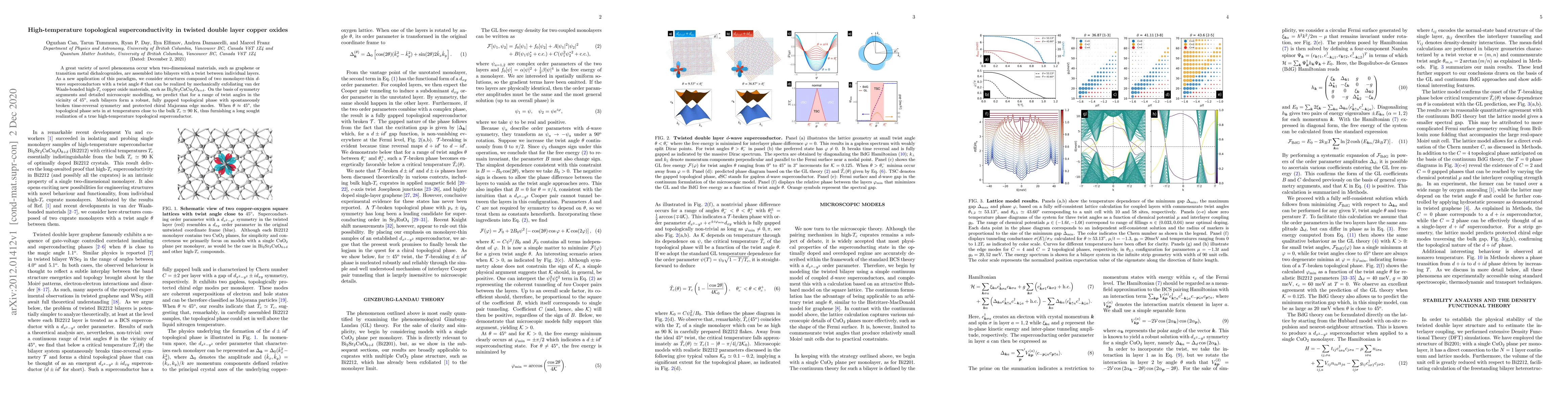 A great variety of novel phenomena occur when two-dimensional materials, such as graphene or transition metal dichalcogenides, are assembled into bilayers with a twist between individual layers. As a new application of this paradigm, we consider structures composed of two monolayer-thin $d$-wave superconductors with a twist angle $\theta$ that can be realized by mechanically exfoliating van der Waals-bonded high-$T_c$ copper oxide materials, such as Bi$_2$Sr$_2$CaCu$_2$O$_{8+\delta}$. On the basis of symmetry arguments and detailed microscopic modelling, we predict that for a range of twist angles in the vicinity of $45^{\rm o}$, such bilayers form a robust, fully gapped topological phase with spontaneously broken time-reversal symmetry and protected chiral Majorana edge modes. When $\theta\approx 45^{\rm o}$, the topological phase sets in at temperatures close to the bulk $T_c\simeq 90$ K, thus furnishing a long sought realization of a true high-temperature topological superconductor.