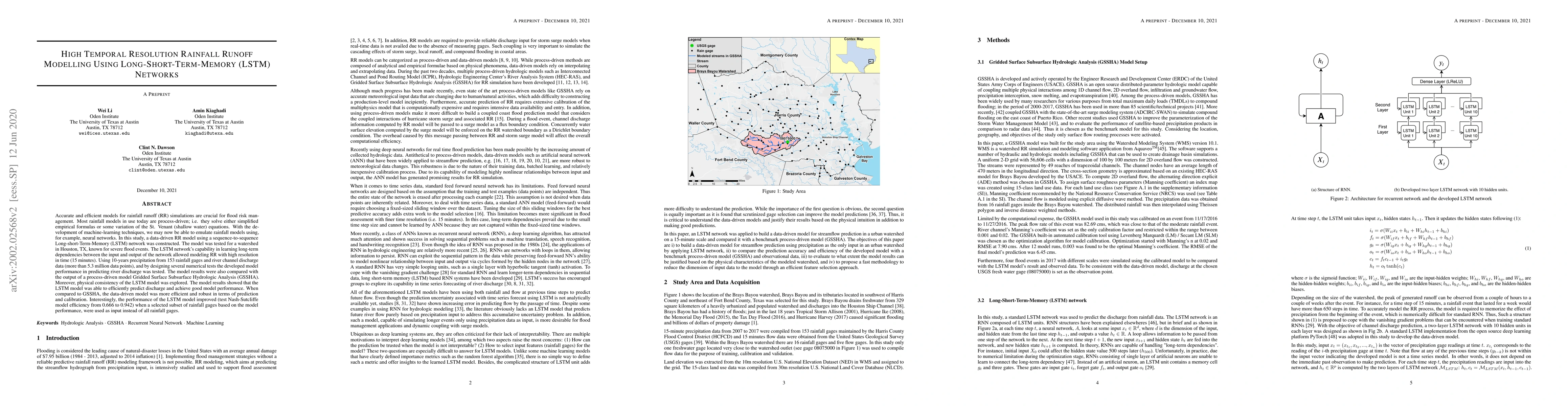 This study develops a high-temporal resolution rainfall runoff model using a Long-Short-Term Memory (LSTM) network, achieving efficient and robust predictions compared to a traditional process-driven model, with performance improving when a subset of rainfall data is used.