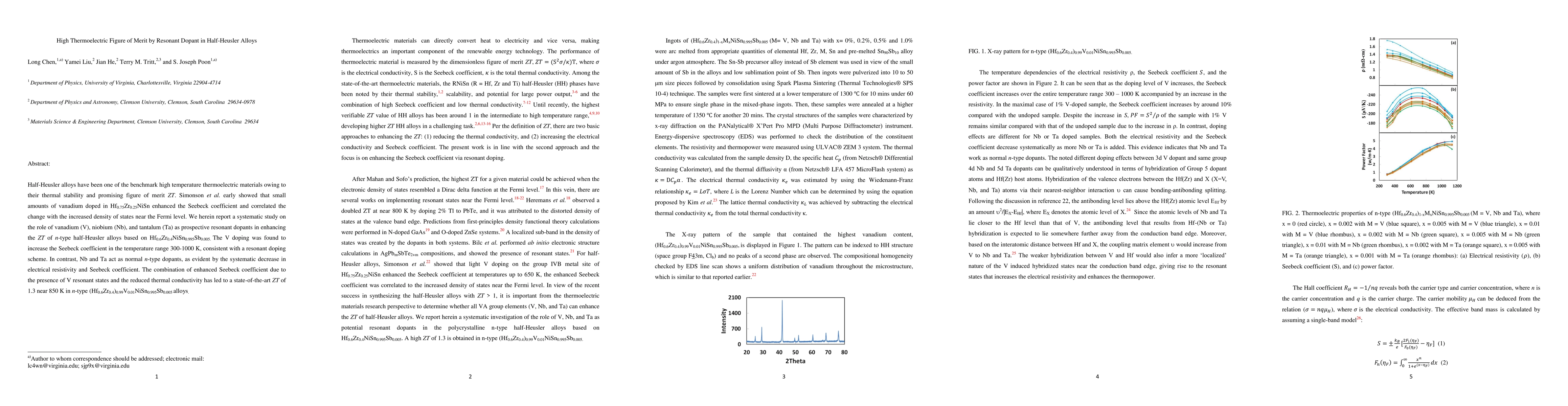 This study investigates the impact of vanadium, niobium, and tantalum doping on the thermoelectric performance of n-type half-Heusler alloys, finding that vanadium acts as a resonant dopant enhancing the Seebeck coefficient, while niobium and tantalum behave as normal n-type dopants. The optimal alloy, (Hf0.6Zr0.4)0.99V0.01NiSn0.995Sb0.005, achieves a state-of-the-art ZT of 1.3 near 850 K.