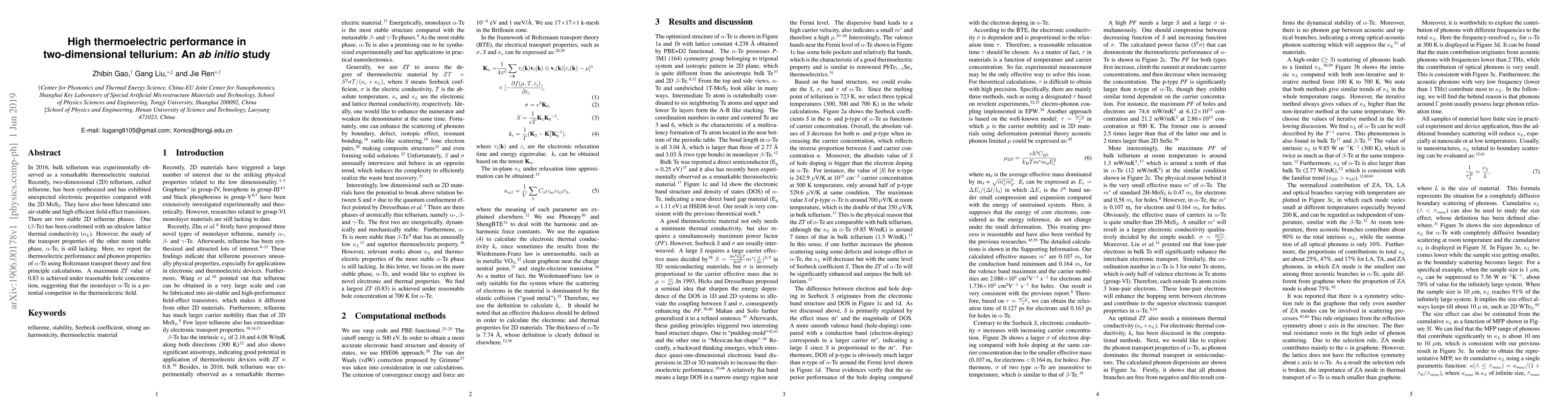 This study investigates the thermoelectric performance of the more stable phase of two-dimensional tellurium, $\alpha$-Te, using ab initio calculations. The research reveals a maximum ZT value of 0.83, indicating that monolayer $\alpha$-Te could be a promising material for thermoelectric applications.