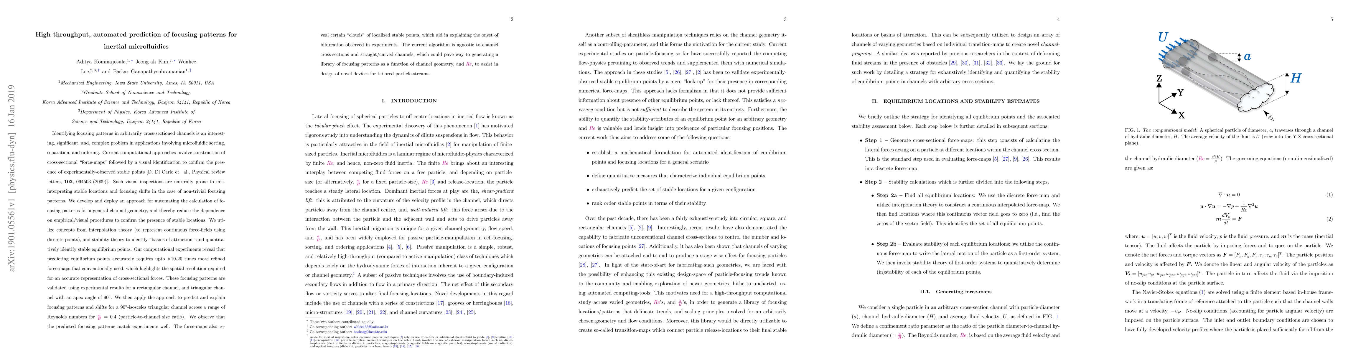 This paper develops an automated computational method to predict focusing patterns in inertial microfluidics using interpolation and stability theory, enabling accurate identification of stable equilibrium points. Experimental validation shows that the method can effectively predict and explain focusing shifts across various channel geometries and Reynolds numbers.