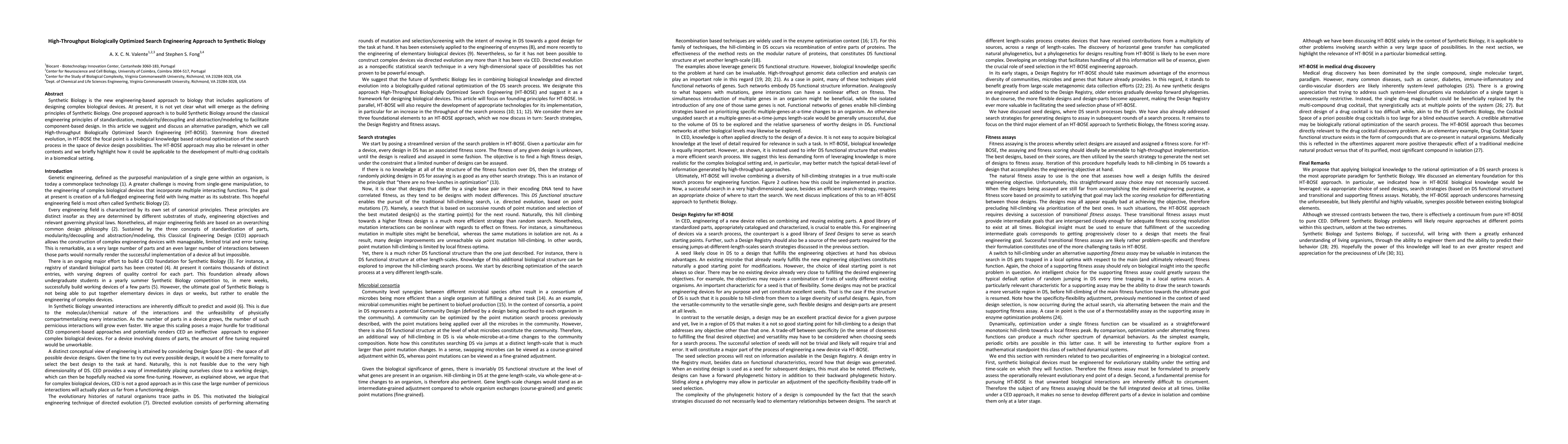 This paper proposes High-throughput Biologically Optimized Search Engineering (HT-BOSE) as an alternative paradigm for Synthetic Biology, emphasizing rational optimization of design processes based on biological knowledge. It suggests HT-BOSE could also aid in the development of multi-drug cocktails in biomedical applications.