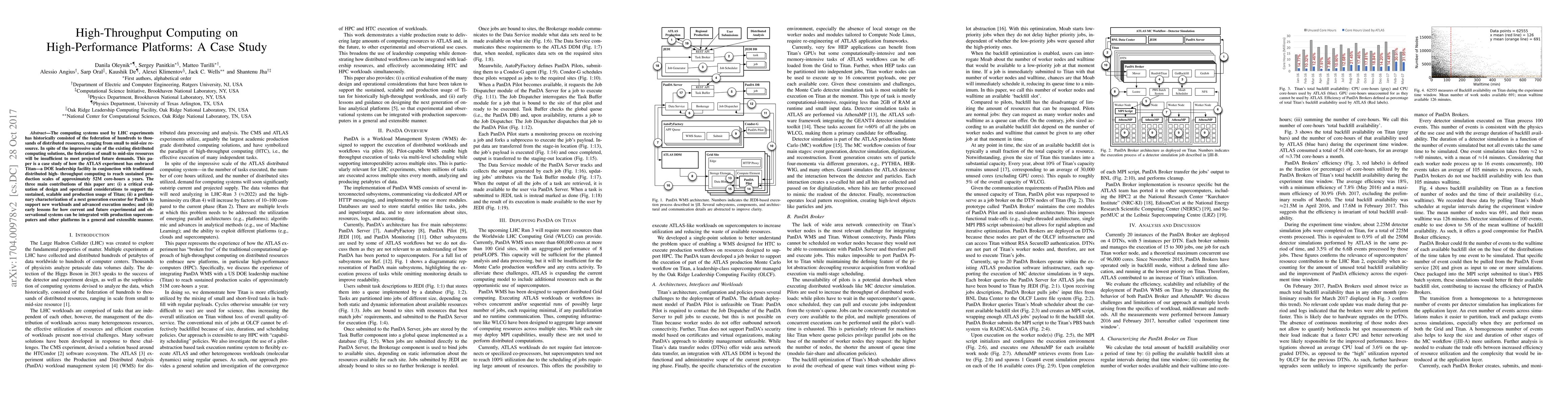 The computing systems used by LHC experiments has historically consisted of the federation of hundreds to thousands of distributed resources, ranging from small to mid-size resource. In spite of the impressive scale of the existing distributed computing solutions, the federation of small to mid-size resources will be insufficient to meet projected future demands. This paper is a case study of how the ATLAS experiment has embraced Titan---a DOE leadership facility in conjunction with traditional distributed high- throughput computing to reach sustained production scales of approximately 52M core-hours a years. The three main contributions of this paper are: (i) a critical evaluation of design and operational considerations to support the sustained, scalable and production usage of Titan; (ii) a preliminary characterization of a next generation executor for PanDA to support new workloads and advanced execution modes; and (iii) early lessons for how current and future experimental and observational systems can be integrated with production supercomputers and other platforms in a general and extensible manner.