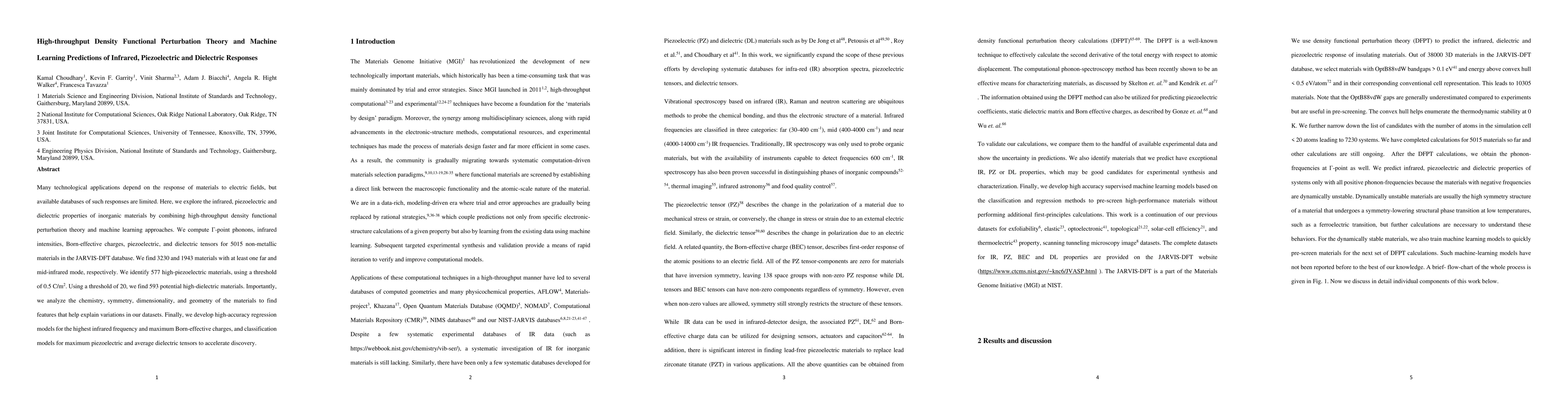 Researchers used a combination of density functional perturbation theory and machine learning to predict properties of 5015 non-metallic materials, identifying features that explain variations in their infrared, piezoelectric, and dielectric responses.