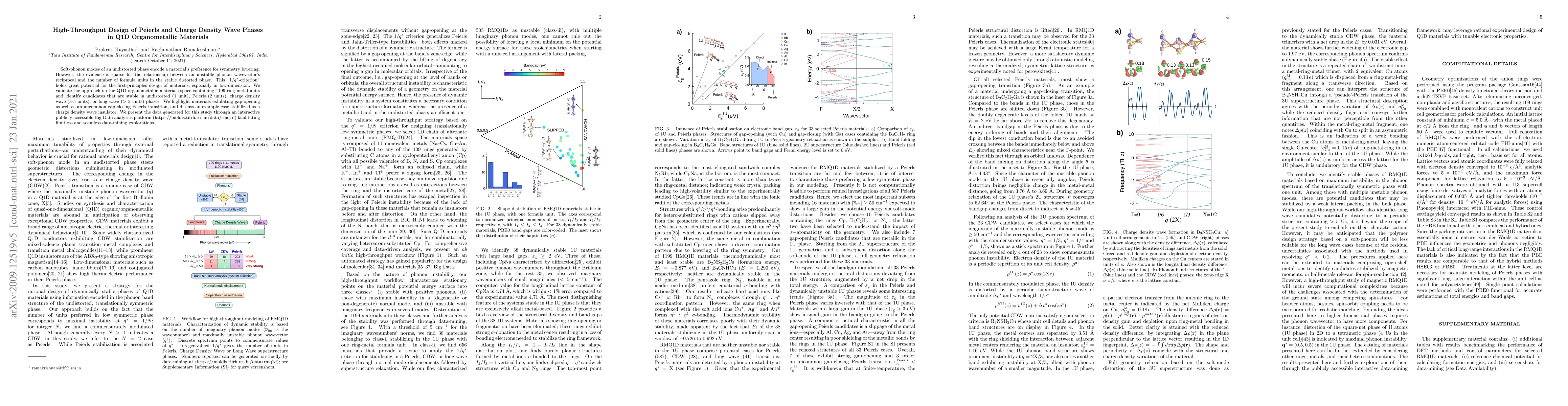 Soft-phonon modes of an undistorted phase encode a material's preference for symmetry lowering. However, the evidence is sparse for the relationship between an unstable phonon wavevector's reciprocal and the number of formula units in the stable distorted phase. This "1/q*-criterion" holds great potential for the first-principles design of materials, especially in low-dimension. We validate the approach on the Q1D materials space containing 1199 ring-metal units and identify candidates that are stable in undistorted (1 unit), Peierls (2 units), charge density wave (3-5 units), or long wave (>5 units) phases. We highlight materials exhibiting gap-opening as well as an uncommon gap-closing Peierls transition, and discuss an example case stabilized as a charge density wave insulator. We present the data generated for this study through an interactive publicly accessible Big Data analytics platform (http://moldis.tifrh.res.in/data/rmq1d) facilitating limitless and seamless data-mining explorations.