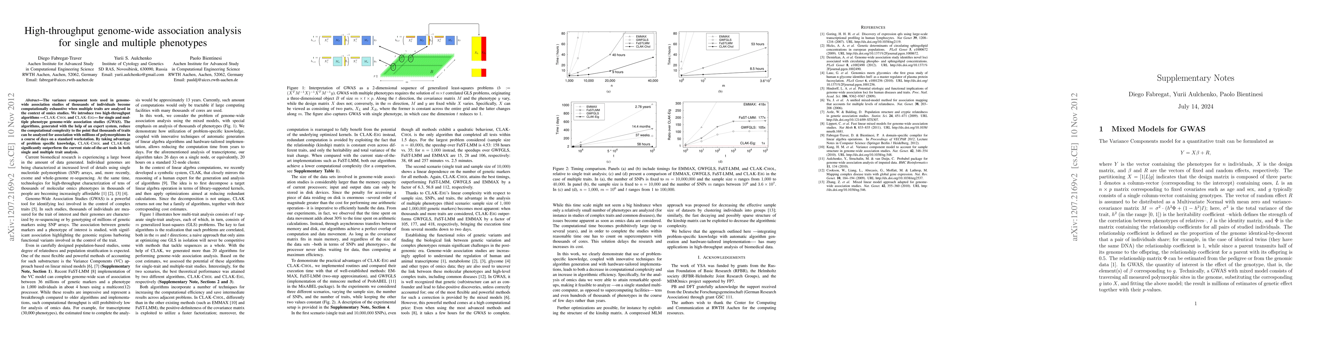 This paper introduces two high-throughput algorithms, CLAK-CHOL and CLAK-EIG, designed to efficiently perform genome-wide association studies (GWAS) for both single and multiple phenotypes. These algorithms significantly reduce computational complexity, enabling the analysis of thousands of traits against millions of polymorphisms within days on a standard workstation.