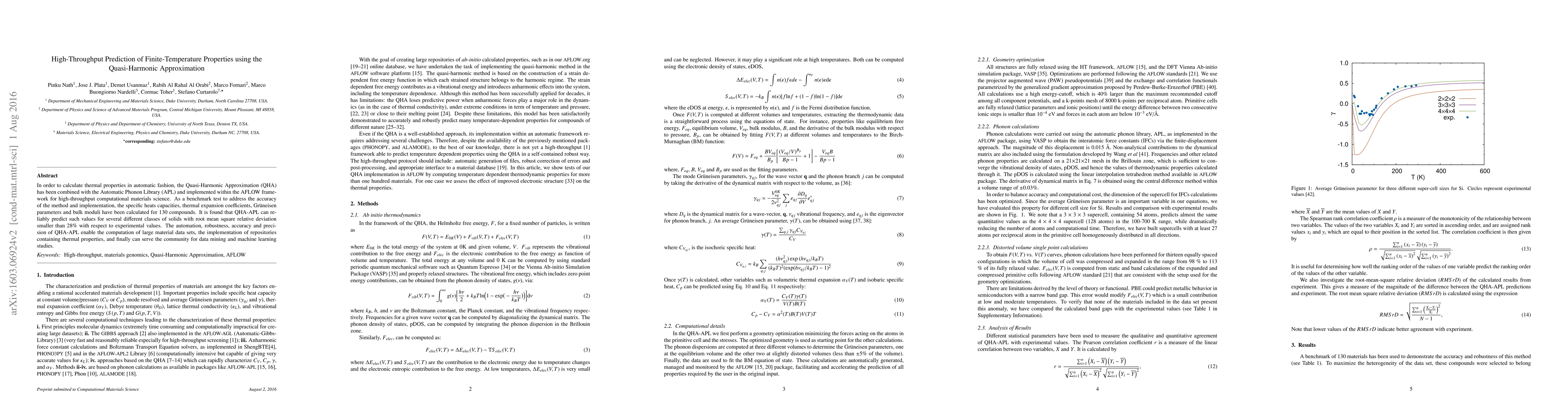 This paper presents a high-throughput method combining the Quasi-Harmonic Approximation (QHA) with the Automatic Phonon Library (APL) within the AFLOW framework for automatic thermal properties calculation. Benchmark tests on 130 compounds show that the method can accurately predict specific heats, thermal expansion, and bulk moduli with a relative deviation of less than 28% from experimental data.
