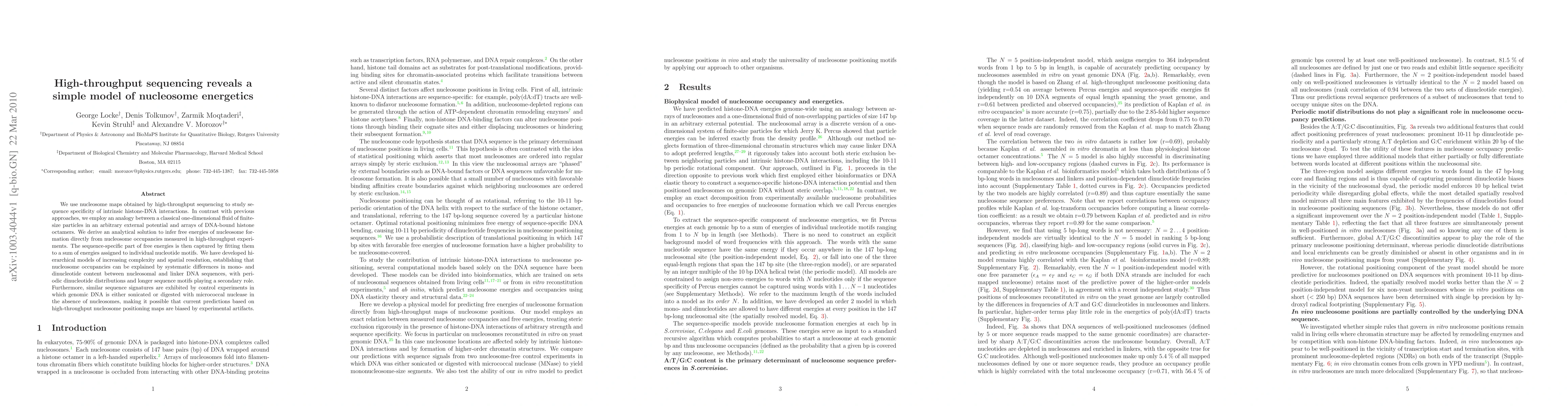This study uses high-throughput sequencing to model nucleosome energetics, revealing that nucleosome occupancies primarily depend on systematic differences in mono- and dinucleotide content between nucleosomal and linker DNA sequences, with minimal influence from longer sequence motifs.