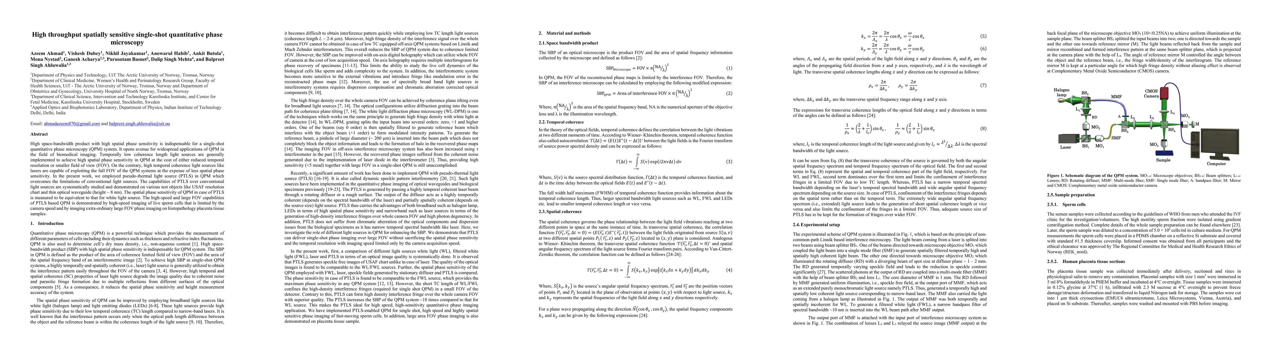 This paper introduces a pseudo-thermal light source (PTLS) for high throughput single-shot quantitative phase microscopy (QPM) that achieves high spatial phase sensitivity and large field of view without compromising temporal resolution. The PTLS-based QPM demonstrates high-speed imaging of live sperm cells and large FOV phase imaging on placenta tissue samples.