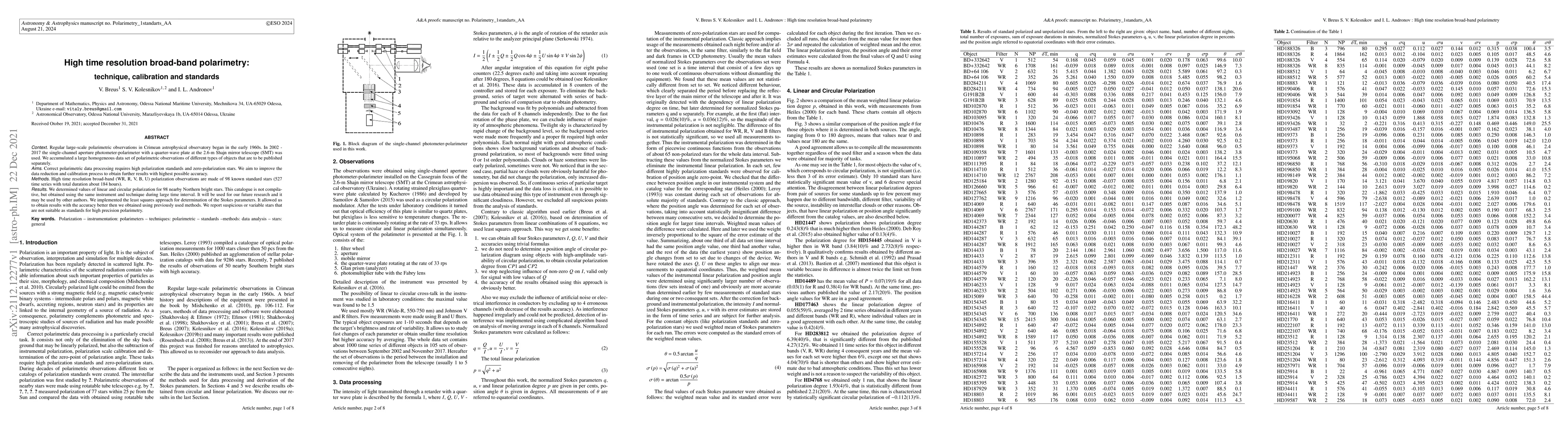 Researchers improved polarimetry technique using 98 standard stars for high time resolution broad-band observations, achieving better accuracy than previous methods.