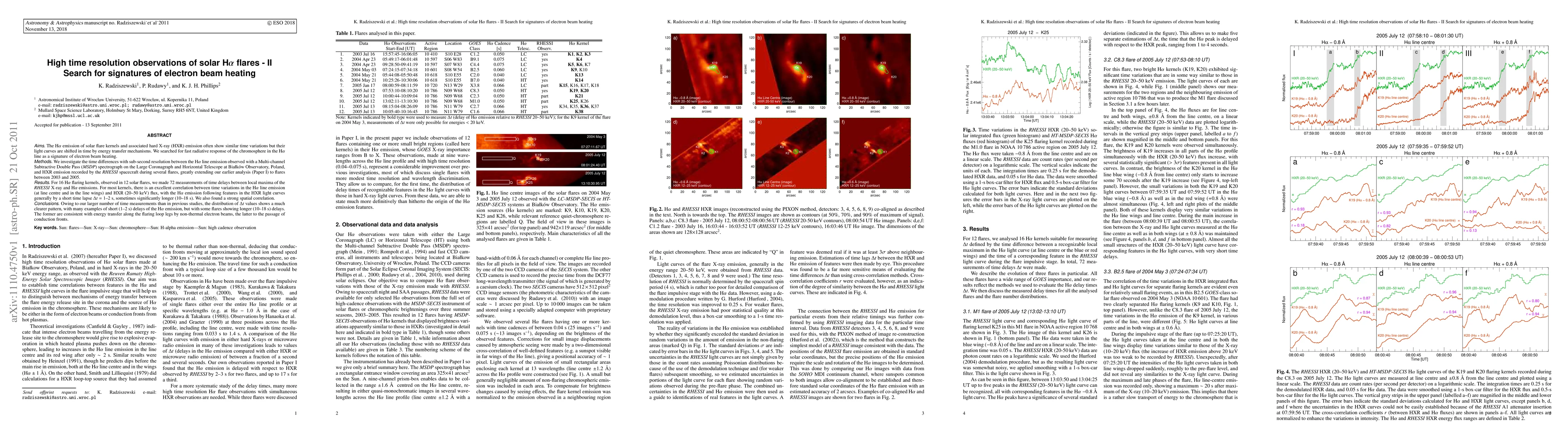 This study investigates the time delays between H-alpha line emissions and hard X-ray (HXR) emissions during solar flares, revealing a correlation between the two with H-alpha typically following HXR by 1-2 seconds. The findings suggest that short delays are indicative of electron beam heating, while longer delays may indicate conduction fronts.
