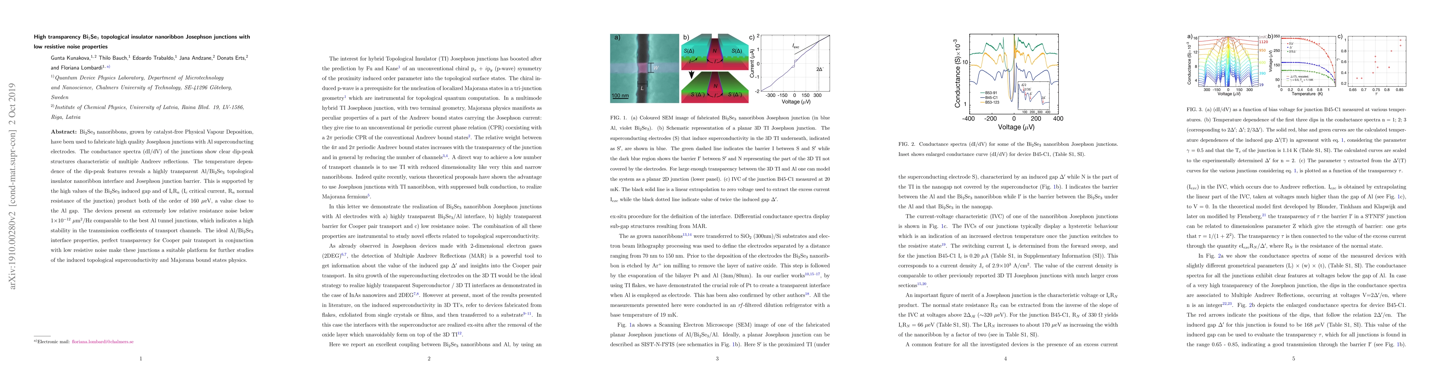 This paper reports on the fabrication of high-quality Josephson junctions using Bi$_2$Se$_3$ nanoribbons, showing clear multiple Andreev reflection features and a highly transparent interface. The junctions exhibit low resistive noise and high stability, making them ideal for studying topological superconductivity and Majorana bound states.