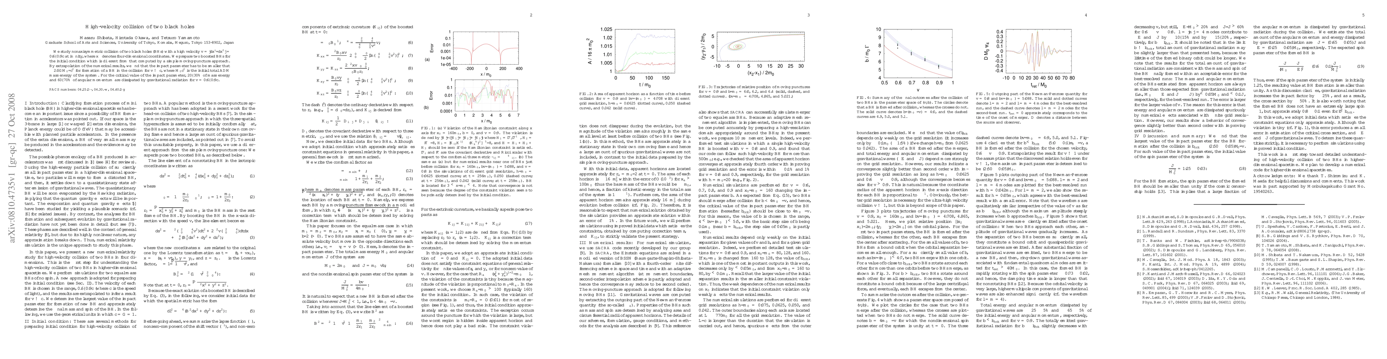 This research investigates the high-velocity collision of two nonaxisymmetric black holes moving at speeds between 0.6c and 0.9c, finding that a critical impact parameter of approximately 2.5GM₀/c² is necessary for black hole formation. It reveals that 20-30% of mass energy and 60-70% of angular momentum are lost to gravitational radiation during the collision.