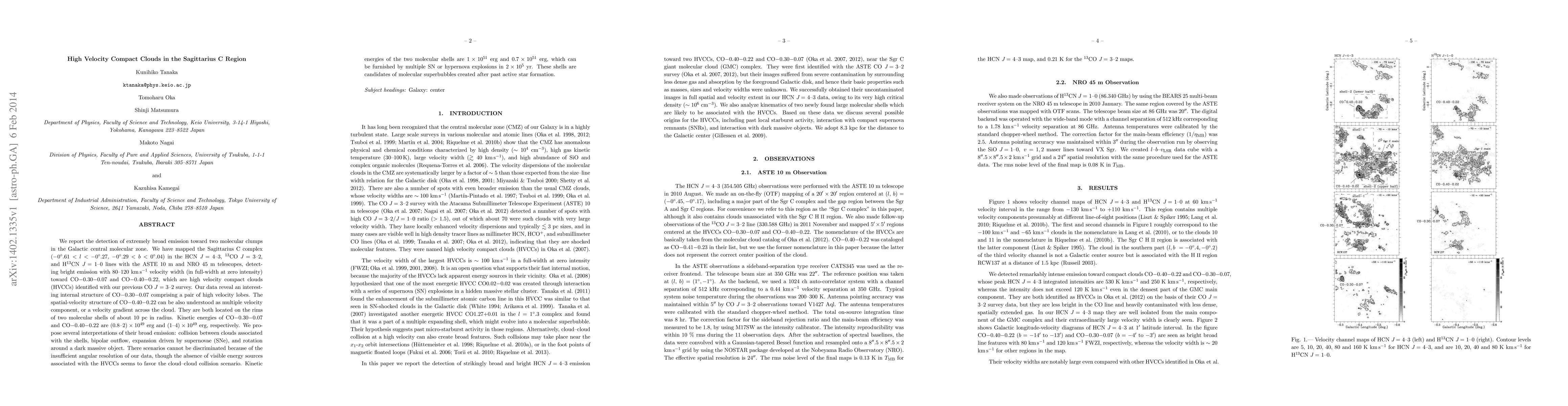 The research utilized observations with the ASTE 10 m and NRO 45 m telescopes in HCN J=4--3, 13CO J=3--2, and H13CN J=1--0 lines to study the Sagittarius C complex.