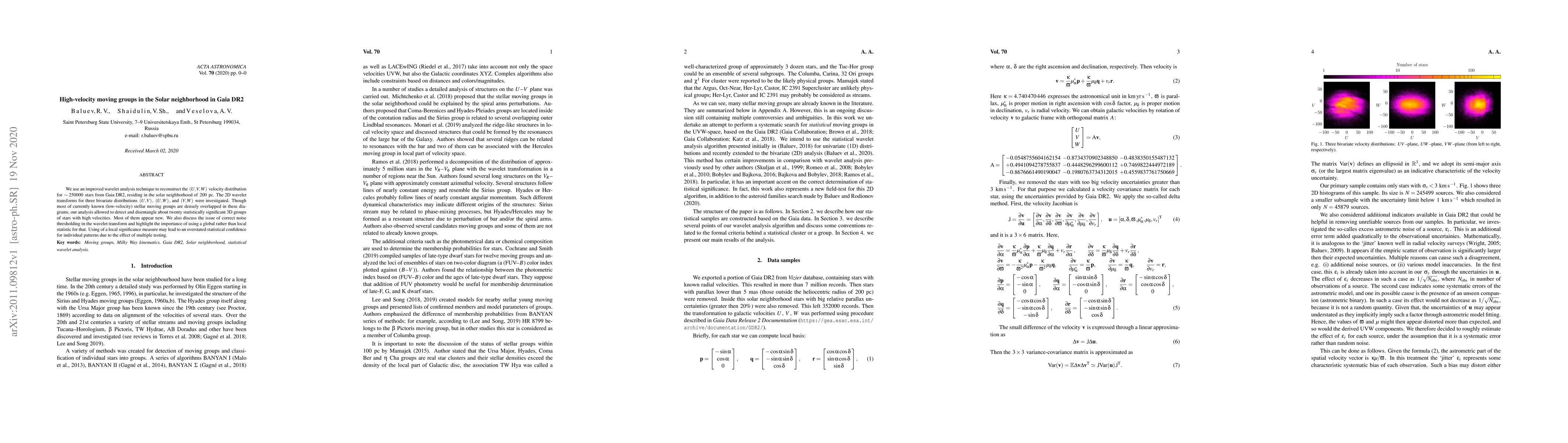 The study uses improved wavelet analysis to identify 20 new high-velocity stellar moving groups in the solar neighborhood, detecting patterns that were previously overlooked due to noise thresholding issues.
