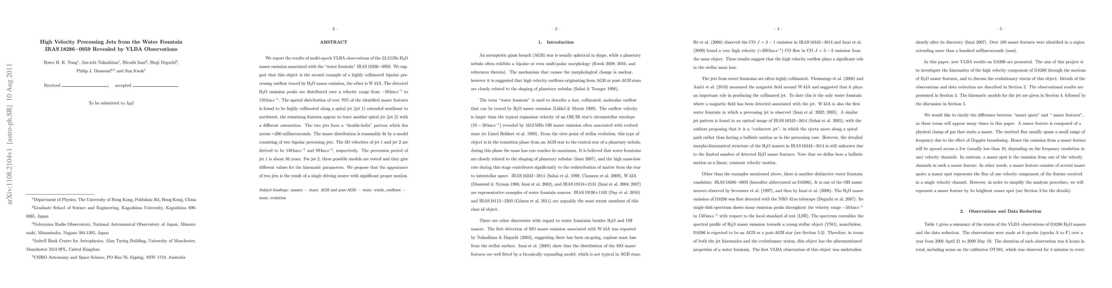 We report the results of multi-epoch VLBA observations of the 22.2GHz water maser emission associated with the "water fountain" IRAS 18286-0959. We suggest that this object is the second example of a highly collimated bipolar precessing outflow traced by water maser emission, the other is W43A. The detected water emission peaks are distributed over a velocity range from -50km/s to 150km/s. The spatial distribution of over 70% of the identified maser features is found to be highly collimated along a spiral jet (jet 1) extended southeast to northwest, the remaining features appear to trace another spiral jet (jet 2) with a different orientation. The two jets form a "double-helix" pattern which lies across ~200 milliarcseconds. The maser distribution is reasonably fit by a model consisting of two bipolar precessing jets. The 3D velocities of jet 1 and jet 2 are derived to be 138km/s and 99km/s, respectively. The precession period of jet 1 is about 56 years. For jet 2, three possible models are tested and they give different values for the kinematic parameters. We propose that the appearance of two jets is the result of a single driving source with significant proper motion.