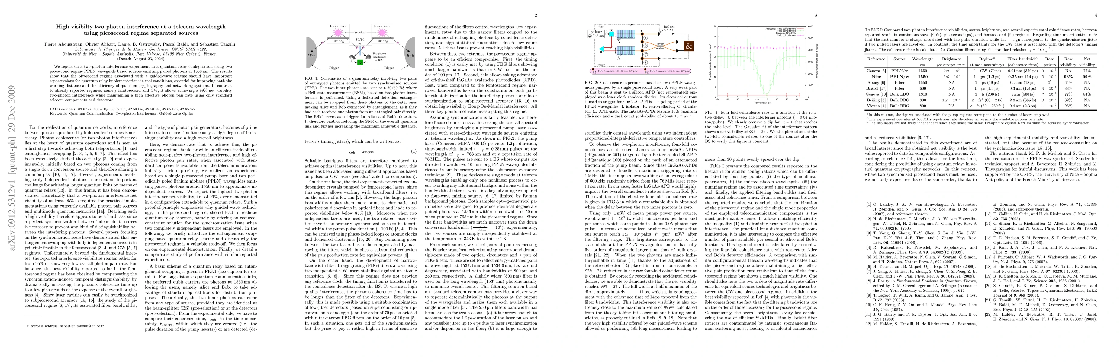 This paper demonstrates high-visibility two-photon interference at a telecom wavelength using picosecond regime sources in a quantum relay configuration, achieving 99% net visibility and high effective photon pair rate, which significantly enhances the efficiency and working distance for quantum cryptography and networking.