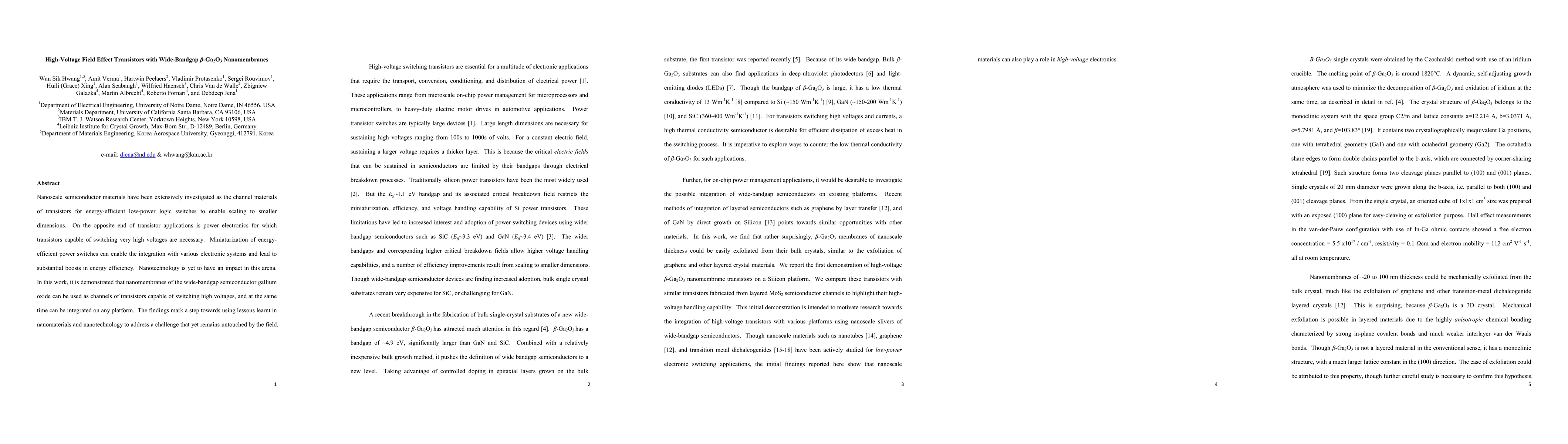 Researchers demonstrate that nanomembranes of wide-bandgap gallium oxide can be used to create high-voltage transistors that can be integrated onto any platform, marking a step towards boosting energy efficiency in power electronics.
